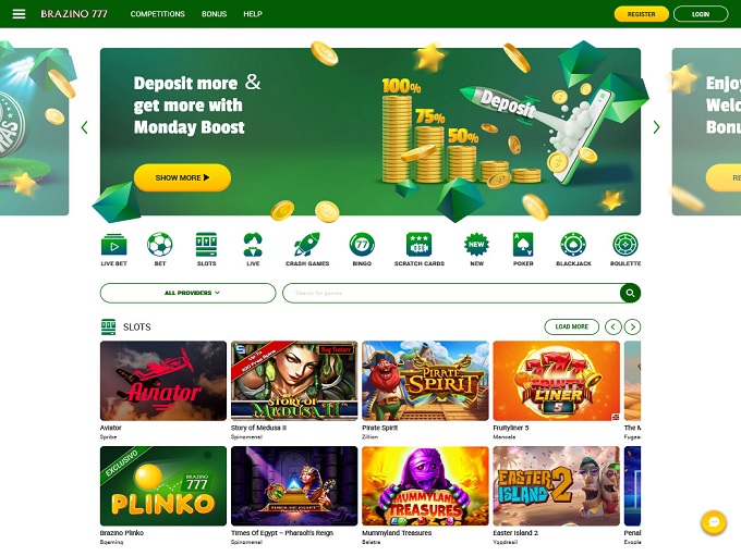 Brazino 777 Casino is an English, Portuguese and Spanish language online casino which, as its title suggests, predominantly caters to those players based in Brazil. A simple casino which opts to use the Brazilian real as its currency of choice, the site is equipped with games from an unusual array of providers and holds a Curacao issued online gambling license. Gameplay is available in instant play format.