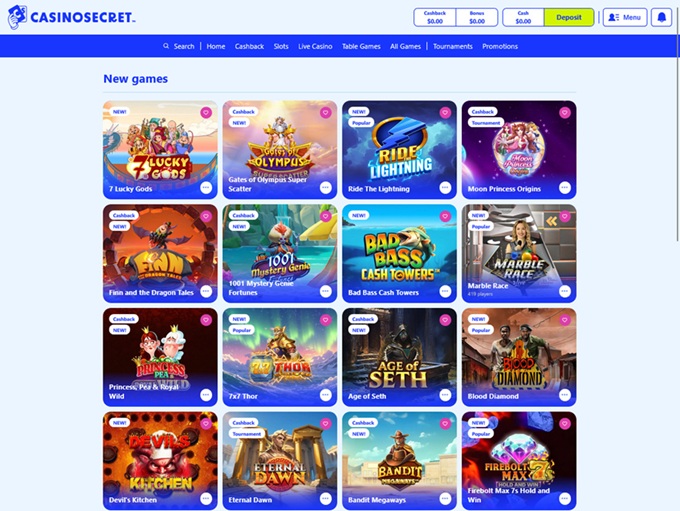 Tournaments and cashback offers also plentiful at this casino. However, there are the only other real promos and bonuses you can snap up at Casino Secret. Casinos which feature bonuses that do not carry wagering requirements do not tend to churn out too many of them. A full list of all of their deals in this regard is available via the casino’s website.