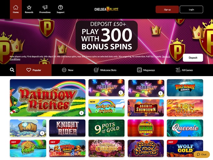 There are many top slots you can choose to play at Chelsea Palace Casino, but some tend to be more popular than others. Some of the more renowned games include Starburst, Cleopatra, Rainbow Riches, Fluffy Favourites, Gonzo’s Quest, Fortune Favours: MegaWays, King Kong Cash, Ted, Taco Brothers, and Zeus.