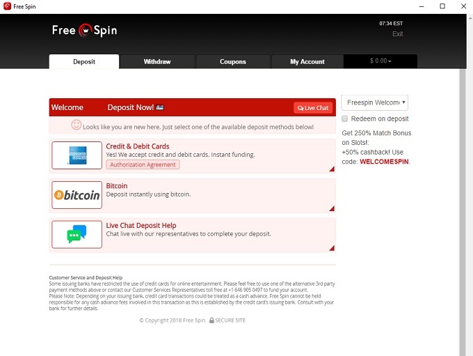 The starting page at Free Spin Casino is not that interesting, and on the first sight won't make a big difference in comparison to other similar sites. However, it does pay off to stick around and play a round or two. First of all, this is a casino that accepts US players, which is great news, as it is not easy to find similar casinos. There are around 200 games to choose from, downloadable and instant versions. Although they don't advertise it, you can withdraw the cash to other than only visa card, but you do need to talk with the support in order to get it. Not really sure why they do it like that. Anyway, you have easy to understand rules considering withdrawal, including the Account verification process, and you should pay attention to details in order to get everything done as fast as possible, and the money can be in your account in just a few days.